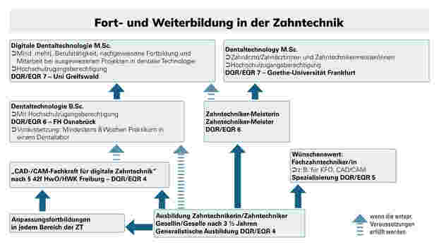 Für den Beruf des Zahntechnikers/der Zahntechnikerin gibt es vor allem die AufstiegsfortbildungMeisterprüfung im Zahntechniker-Handwerk